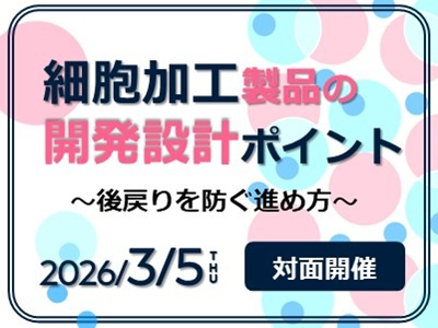 本セミナーでは、再生・細胞医療分野の研究開発の最新動向や関連する規制の内容、そのねらいに関する情報を提供します。製品化を見据えた研究開発、事業化戦略を構築するための視点など、経験に基づく知見から、“後戻り”を防ぐポイントをご紹介します。